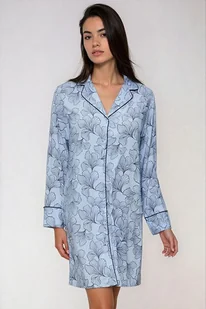 Wiskozowa koszula nocna z jednolitego materiału lnianego z pięknym wzorem liści zapewni ci wygodny wypoczynek. Koszula nocna Boyfriend Fit jest wykonana w 100% z wiskozy. Materiał to jednolita tkanina z kwiatowym wzorem w kolorze niebieskim. Koszula ma krótką długość i długie rękawy. Jest zapinana na guziki i ma kołnierzyk.
