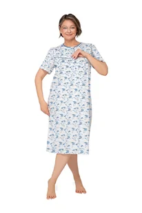 Specyfikacja: ✳️ rozmiar 2XL (przed zakupem sprawdź tabelę rozmiarów) ✳️ materiał: 100% bawełna ✳️ polski producent ✳️ krótki rękaw ✳️ luźny, niekrępujący ruchów krój ✳️ długość za kolano ✳️ rewers na pięć guzików ✳️ kolor: niebieski/ wzór kwiaty Firma MARTEL polski producent oferuje: Koszulę nocną damską Bogna Koszula nocna damska Bogna to doskonały wybór dla osób ceniących sobie komfort podczas snu.