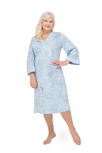 KOSZULA NOCNA DAMSKA L NIEBIESKA BAWEŁNIANA DŁUGI RĘKAW DLA MAMY BABCI