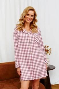 Koszula nocna TM.7300.MAUVE to propozycja stworzona dla kobiet, które cenią wygodę, naturalne tkaniny i ponadczasowy styl. Uszyta z miękkiej, oddychającej bawełny w modną kratkę w odcieniu mauve, doskonale łączy w sobie funkcjonalność i kobiecy wygląd. Klasyczny kołnierzyk i pełne zapięcie na guziki sprawiają, że sprawdzi się również jako model do karmienia piersią czy w czasie ciąży.