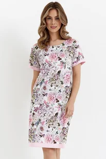 Pokochasz koszulę nocną Hortensia II dzięki wysokiej jakości bawełnie i pięknemu kwiatowemu wzorowi. Koszula nocna wykonana jest w 100% z bawełnianego dżerseju. Ma różowo-fioletowy kolor i kolorowy kwiatowy wzór. Ma okrągły dekolt. Rękawy są krótkie i obszyte różową lamówką.