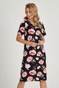 Czarna Koszula Nocna z Kwiatowym Printem z Siateczki Xyvi