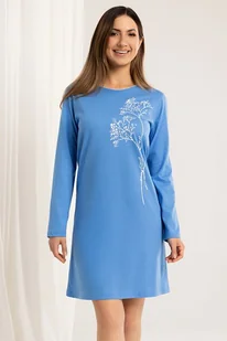 Koszula nocna Sometimes ma piękny niebieski kolor i jest ozdobiona przyzwoitym roślinnym nadrukiem z boku. Koszula nocna Sometimes jest niebieska i ma kwiatowy nadruk z boku. Materiał to 100% bawełniana dzianina, która jest przyjemna w dotyku i dobrze wchłania wilgoć. Ma długie rękawy i okrągły dekolt. Koszula ma krótką długość, która zapewnia komfort podczas snu.
