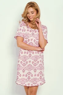 Koszula nocna Tara wykonana jest z wysokiej jakości 100% bawełny, ma uroczy kwiatowy wzór i stary różowy kolor. Koszula wykonana jest w 100% z bawełny. Ma stary różowy kolor i oryginalny kwiatowy wzór. Obszycia są ozdobnie marszczone. Dolna krawędź koszuli ma zaokrąglony brzeg.