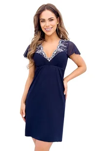 Doona koszulka nocna z rękawkiem granatowa Adele to propozycja dla kobiet, które cenią zmysłową elegancję połączoną z codziennym komfortem. Granatowa koszulka nocna z miękkiej wiskozy delikatnie otula sylwetkę, a subtelne wykończenia z haftu i tiulu dodają jej wyjątkowego charakteru.
