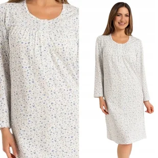 Bawełniana koszula Regina 015 Zalety produktu: Koszula która zachwyca swoją praktycznością. Wykonana z dobrej jakości bawełny w niebieskie drobne kwiatuszki, Doskonała po prostu do komfortowego snu, pozwoli każdej kobiecie poczuć się wygodnie. Dekolt okrągły, zapinany na pięć guziczków, poniżej karczek z marszczeniami. Luźny fason, długości do kolan, idealnie układająca się do ciała.