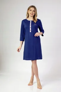 Koszula damska z rękawem długości 3/4, uszyta z delikatnej bawełny, przód koszuli rozpinany na guziczki. Dekolt okrągły. Długość koszuli przed kolano. Skład:...