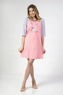 Koszula damska z rękawem długości 3/4, uszyta z delikatnej bawełny, przód koszuli ozdobiony nadrukiem. Dekolt okrągły. Długość koszuli przed kolano. Skład: 1...