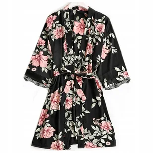 Satynowy szlafrok damski w kwiaty satyna podomka - M