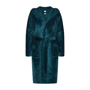 Szlafrok damski krótki z kapturem. Wykonany z miłej, miękkiej i przyjemnej w dotyku dzianiny. Wiązany w pasie, posiada wygodne kieszenie. Skład: 100% poliester