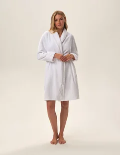 Szlafrok damski Jolanda to uosobienie komfortu i elegancji w jednym. Wykonany z miękkiego, ciepłego pluszu, zapewnia uczucie otulenia i przytulności. Jego bi...