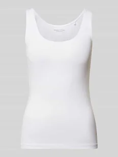 Top damski Marc O'Polo;Efekt: jednolity kolor;Krój: Krój shaped fit ;Aplikacja: Nadruk z logo;Dekolt: Okrągły dekolt;Ramiączka: