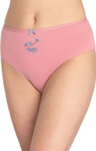 3-pack bawełniane figi damskie L-122BI-63 wykonane z miękkiej i oddychającej dzianiny, zapewniającej wyjątkowy komfort noszenia przez cały dzień. Klasyczny krój gwarantuje wygodne dopasowanie do sylwetki, a elastyczna talia delikatnie przylega do ciała bez uciskania. Model dostępny w trzech wersjach kolorystycznych: gładkie różowe i granatowe z subtelnym, roślinnym nadrukiem oraz wersja jasnoniebieska pokryta w całości uroczym wzorem w kwiaty i liście. Każda para została ozdobiona małą kokardką z przodu, dodając całości kobiecego uroku.