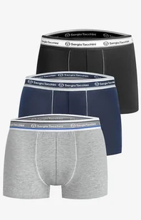 3-pak bokserki męskie bawełniane 9000 Sergio Tacchini to esencja funkcjonalności i sportowej elegancji. Marka z włoskimi korzeniami, znana ze swojego dziedzictwa w świecie profesjonalnego sportu, oferuje bieliznę, która łączy wygodę, styl i wytrzymałość niezależnie od tempa dnia. W skład 3-paku wchodzą trzy klasyczne kolory: czarny, granatowy i jasnoszary melanż wszystkie z charakterystycznymi elastycznymi pasami z logo Sergio Tacchini, które nie tylko świetnie wyglądają, ale też idealnie trzymają bokserki na miejscu. Wysoka zawartość bawełny (94%) gwarantuje oddychalność, miękkość i natural