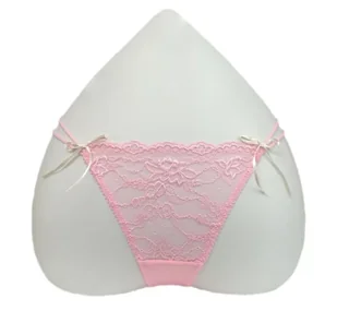 Zmysłowe stringi damskie, wykonane z miękkiej koronki, która idealnie dopasowuje się do sylwetki. Boczki to cienkie, podwójne sznureczki typu spaghetti zakończone atłasowymi kokarkami. Skąpy tył w elastycznej siateczki. Skład: 92% nylon, 8% elastan. WYMIARY: