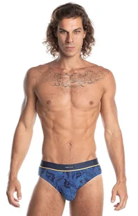 Klasyczne slipy męskie M-987SD w ekonomicznym dwupaku. Jedna para w jednolitym kolorze niebieskim, druga w tym samym kolorze z printem w wieloryby. Majtki męskie zostały wykonane z bawełny, dzięki czemu zapewnią wygodę i komfort noszenia przez cały dzień.
