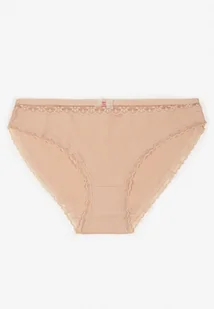 Beżowe Bawełniane Majtki Typu Figi z Koronką i Kokardą Zeteria