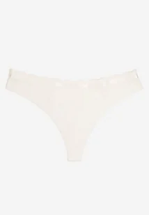 Białe Prążkowane Majtki Stringi z Bawełny Tesivia