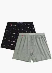 Bokserki o standardowej długości nogawek oraz średniej wysokości talii, zaznaczonej nieuciskającą ciała gumą z logo ATLANTIC. Luźny krój, koszykarski nadruk. Pakowane po 2 szt. Skład: 100% bawełna.