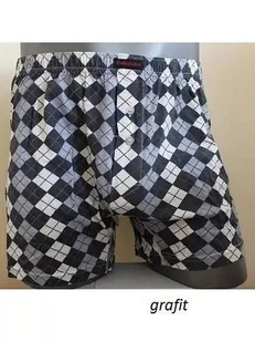 Wzorzyste bokserki męskie. Między nogawkami wszyty klin zapobiegający otarciom oraz podwyższający komfort noszenia. W pasie wygodna, nieuciskająca guma obszyta bawełną. Materiał: 100% bawełna.