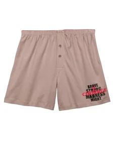 Komfortowe bokserki z kontrastową gumą wewnętrzną i nadrukiem na nogawce. Materiał: 100% bawełna.