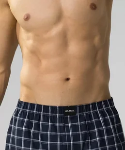 Bokserki męskie o luźnym kroju z nogawkami o klasycznej długości oraz talią wykończoną miękką nieuciskającą gumą wewnętrzmą ozdobioną logo Atlantic. Skład:100%.