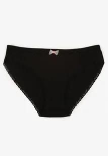 Czarne Majtki Figi z Bawełny Ozdobione Kokardą i Koronką Zeterie
