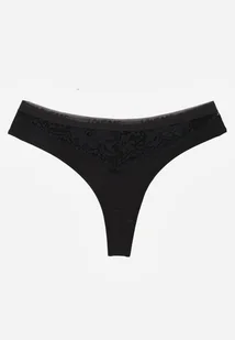 Czarne Majtki Stringi z Bawełną Ozdobione Koronką Thelanthe