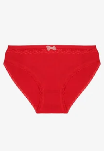 Czerwone Bawełniane Majtki Typu Figi z Koronką i Kokardą Zeteria