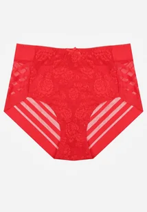 Czerwone Majtki Figi z Wysokim Stanem Zdobione Koronką i Siateczką Helieth
