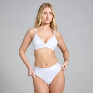 Damskie stringi ze średnim stanem z kolekcji MP (3 sztuki) w kolorze białym to gwarancja trzykrotnego komfortu na co dzień. Miękka, rozciągliwa i bezproblemowa tkanina. Nasze stringi ze średnim stanem są przyjemne w dotyku już od momentu ich założenia, dzięki gładkiemu w dotyku materiałowi, który porusza się wraz z Tobą. Średni stan jest uzupełniony elastycznym pasem, który zapewnia bezpieczne dopasowanie bez wpijania się w ciało. Technologie odprowadzania potu i szybkiego schnięcia pomagają utrzymać chłód zarówno podczas intensywnych sesji treningowych, jak i w drodze do pracy w godzinach szczytu.