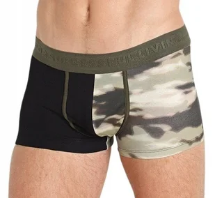 marka: Diesel opis: bokserki, nowe z kompletem metek, w pudełku kolor: zielony khaki/czarny rozmiar: XL wymiary: szerokość w pasie bez rozciągania 40,5 cm, d...