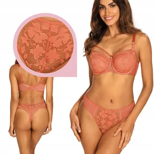 Ewa Bień ORLANDO C201 stringi koralowe kwiatowa koronka majtki - L W pigułce: figi o kroju stringów, wykonane z pół-transparentnej koronki o kwiatowym moty...