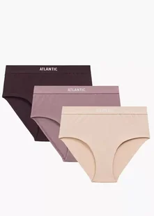Majtki o sportowym fasonie z wysokim stanem (do pępka), szerokimi bokami i zabudowanym tyłem. W pasie wykończone są miękką gumą zewnętrzną z logo ATLANTIC. W opakowaniu 3 szt. Skład: 95% bawełna, 5% elastan.