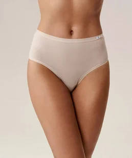 Majtki mają wysoki stan, wykończony miękką i nieuciskającą lamówką z logo Atlantic oraz małą kokardką, szerokie boki i zabudowany tył. W opakowaniu 3 szt. Skład: 95% bawełna, 5% elastan.