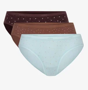Majtki o kroju bikini mają niską talię, zaznaczoną nieuciskającą ciała lamówką, dość głęboko wycięte boki. Figi wykonane z dzianiny cotton stretch, która jest połączeniem miękkiej bawełny z rozciągliwym elastanem. Skład: 95% bawełna, 5% elastan.
