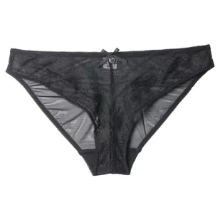 Koronkowe figi typu mini bikini. W kroku bawełniana podszewka, na udach i w pasie wykończenie gumokoronką. Skład: 82% poliamid, 13% elastan, 5% rayon; podszewka 100% bawełna. W opakowaniu 2 szt.