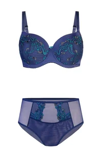 Figi damskie z wysokim stanem granatowe VF-474 wykonane zostały z miękkiej, elastycznej mikrofibry, która delikatnie otula ciało, zapewniając komfort noszenia przez cały dzień. Przód majtek ozdobiony jest subtelnym haftowanym tiulem. Kontrastowe hafty w kolorze granatu i zieleni przyciągają wzrok i nadają całości wyrazistego charakteru.