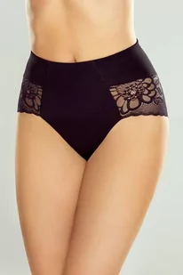 Figi damskie o wysokim, zabudowanym kroju wykonane z wysokiej jakości miękkiej mikrofibry. Idealnie przylegają do ciała. Na biodrach i pośladkach koronkowe wstawki. Skład: 80% poliamid, 17% elastan, 3% bawełna.