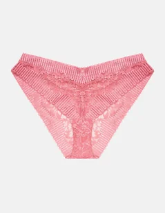 Różowe figi Kenlee to w pełni koronkowa bielizna, która zachwyci Cię delikatnością. Twój wzrok z pewnością przyciągną ciekawe wykończenie i przeszycia na pośladkach. Niewielkie rozcięcie z tyłu pozwoli lepiej dopasować koronkowe figi Kenlee do Twojego ciała. Przód majtek schodzi się ku dołowi, optycznie wydłużając sylwetkę. Modelka ma 175 cm wzrostu i nosi rozmiar M.
