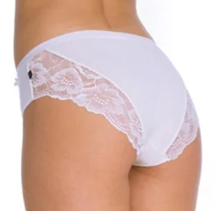 Figi damskie o kroju bikini wykonane z delikatnej i antyalergicznej bawełny 95% z dodatkiem elastanu. Z tyłu elegancka koronka. Pakowane po dwie sztuki.