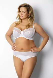 Figi damskie o klasycznym kroju wykonane z mikrofibry. Z przodu górna część majteczek uszyta z tiulu o subtelnym deseniu. Tył gładki. Skład: 60% poliamid, 20% spandex, 17% poliester, 3% bawełna.