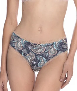 Bawełniane figi damskie o klasycznym kroju bikini. Obszyte koronkową tasiemką. Pakowane w pudełko po dwie sztuki. Skład: 95% bawełna, 5% elastan.