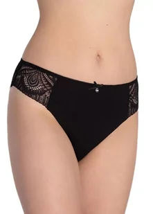 Figi damskie o kroju bikini z wysokiej jakości bawełny. Boki i tył z koronkowymi wstawkami. Pakowane w pudełko po dwie sztuki. Skład: 95% bawełna, 5% elastan.