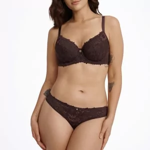 Ciemnobrązowe figi Lollipop to wygodna, a zarazem bardzo stylowa bielizna. Klasyczny fason oraz cienka, nieuciskająca gumka w pasie zagwarantują Ci komfort nawet przez wiele godzin noszenia. Koronkowe, półtransparentne wykończenie oraz kolor głębokiej czekolady sprawią z kolei, że w majtkach Lollipop poczujesz się pewnie i zmysłowo. Modelka ma 173 cm wzrostu i nosi rozmiar M. klasyczny fason bestseller – model bardzo lubiany przez klientki kwiecista koronka Skład materiałowy: