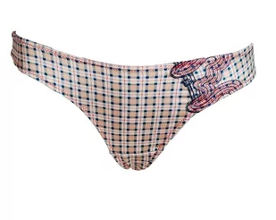 Satynowe stringi w kratkę. Z boku ozdobione haftem.