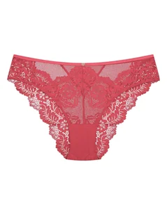 Różowe figi zachwycają delikatnym zdobieniem i klasycznym krojem. Komfort noszenia łączy się tutaj z elegancją. Idealne na każdą okazję. koronkowe detale
