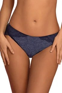 Eleganckie figi w granatowym kolorze.pełny krójklasyczny stanwykonane są z melanżowej dzianinywstawki z koronkiDo kompletu polecamy biustonosz VB-448.Skład: 75% poliamid, 20% elastan, 3% poliester, 2% bawełna.