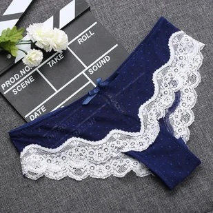 Figi z koronką w delikatne kropki - Granatowy S/M