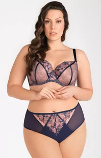 Figi z wysokim stanem granatowe K821 Edna zostały wykonane z elastycznego tiulu i mikrofibry. Przód zdobi kolorowy haft. Tył z podwójnego tiulu, nie odznacza się pod ubraniem. Majtki posiadają wysoką linię talii i zabudowane biodra, zapewniające idealne dopasowanie i wygodę noszenia.